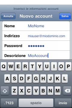 •         Descrizione: una descrizione della casella (es. Email Lavoro, Casella iPhone, Mail XYZ etc).