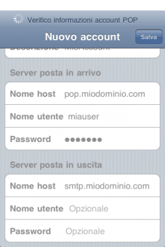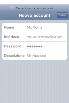 l'iPhone verifica se è possibile recuperare le informazioni sull'account inserito;  al termine dell'operazione compare la schermata che ti permette di inserire o modificare i parametri di funzionamento della tua email.